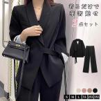 セットアップ レディース パンツスーツ 2点セット ビジネススーツ ワイドパンツ ハイウエスト オフィス ストレートパンツ コーデ 秋 冬 春 長袖