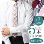 ネクタイ 洗濯ネット付き 5本セット メンズ ストライプ チェック 無地 ウォッシャブル 選べる 全7種類 oth-ux-ne-1462 WS