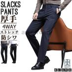 スラックス 裾上げ済み ノータック スリム メンズ ビジネスパンツ 秋冬 厚手 4WAYストレッチ 大きいサイズ 洗える シワになりにくい ウォッシャブル 形態安定