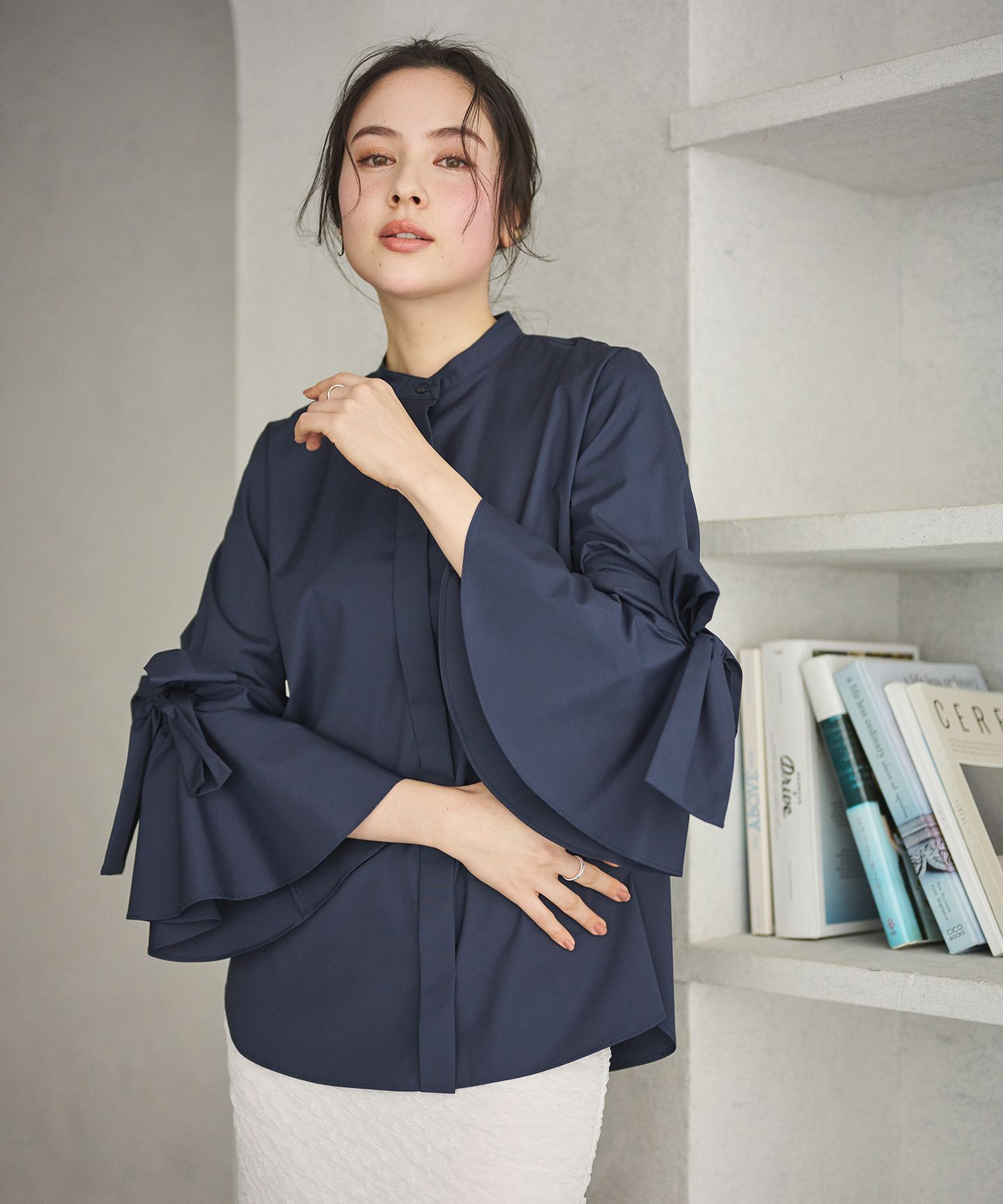 #Newans(ハッシュニュアンス)/【洗濯機可能/シワになりにくい】〈お尻・太ももをカバー〉フレアスリーブイタリアンカラーシャツ