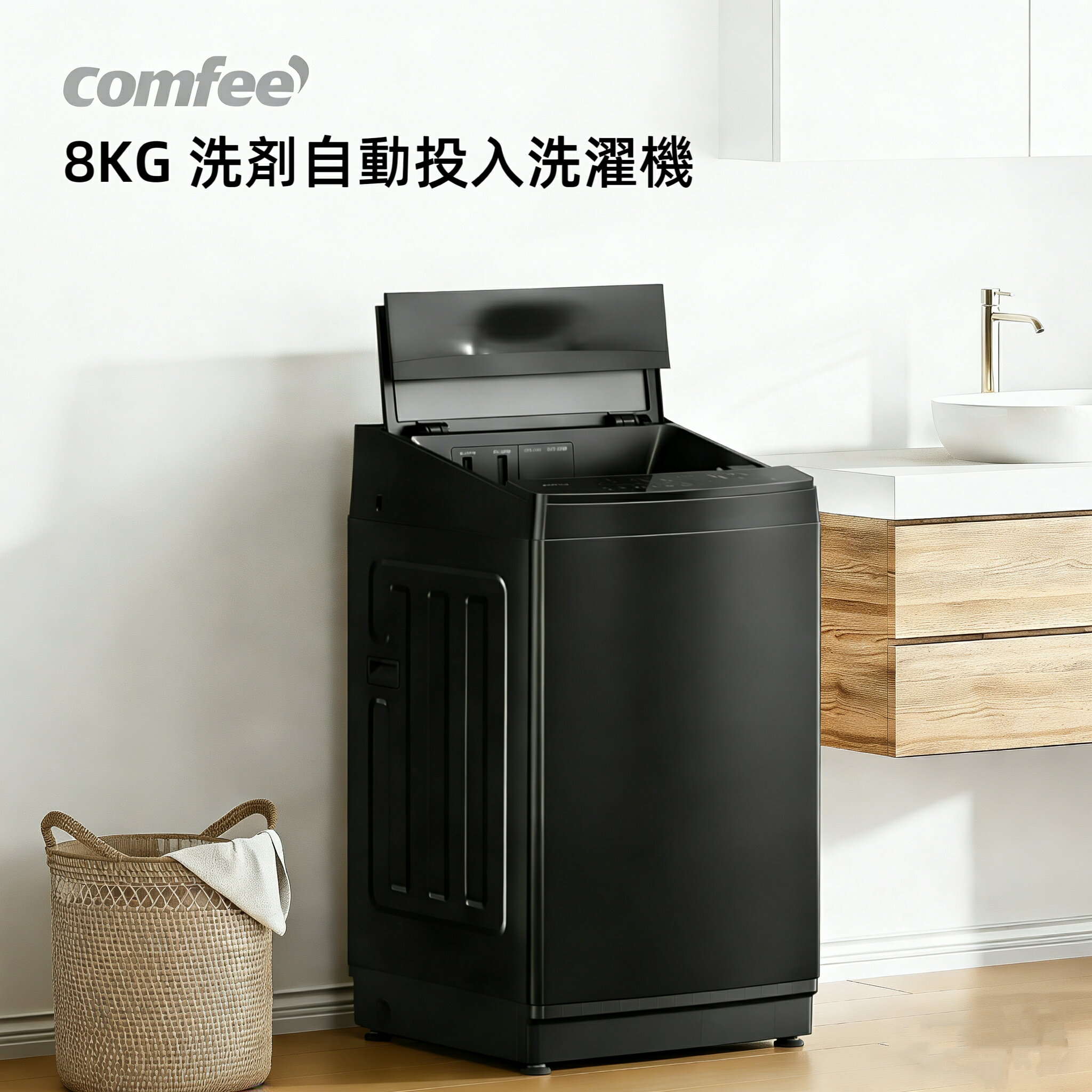 \スーパーSALE限定12%OFF!/ COMFEE' 洗濯機 8kg 洗剤自動投入 ファミリー 2-4人用 ステンレス槽 風乾燥 予約機能 スピードコース ガラスドア 強力水流 大容量 家電 節水 静音設計 まとめ洗い 大物洗い 槽洗浄 コンパクト 黒 金属グレー CA-80A1(T)