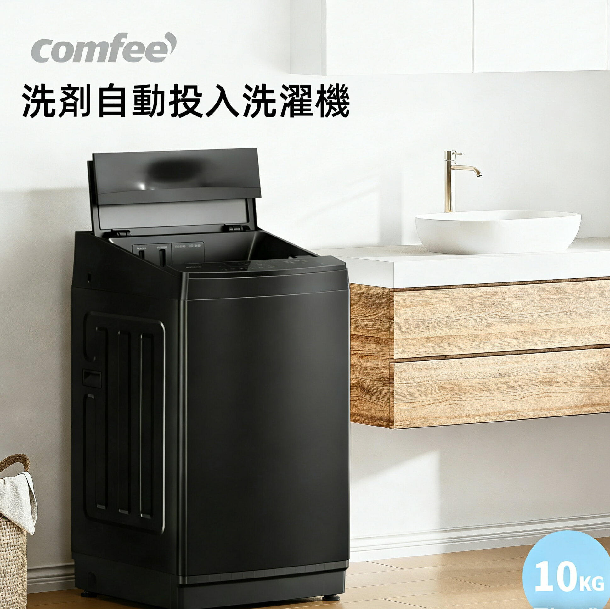 \スーパーSALE限定11%OFF!/ COMFEE' 洗濯機 10kg 洗剤自動投入 ファミリー 3-4人用 ステンレス槽 風乾燥 予約機能 スピードコース ガラスドア 強力水流 大容量 家電 節水 静音設計 まとめ洗い 大物洗い 槽洗浄 コンパクト 黒 金属グレー CA-100A1(T)