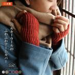 アームウォーマー 日本製 ふわふわのバルキーウール 内側シルク やわらかウール 手袋 指なし アームカバー セミロング丈 手荒れ 指切り 冷え取り