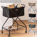 フォールディング バスケットワゴン 洗濯物入れ ランドリー キッチンワゴン ワゴンラック 折りたたみ式 棚付き キャスター付き 収納