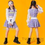 ダンス 衣装 キッズ チアガールズ 紫 スパンコール スカート セットアップ 韓国 夏ジャズダンス へそ出し ヒップホップ 応援団 HIPHOP 練習着