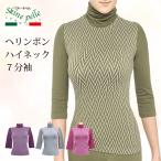 長袖 インナー レディース ハイネック 7分袖 あったか スキーネペッレ ヘリンボン 抗菌 マイクロファイバー ストレスフリー シームレス イタリア製 抗菌 柄