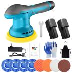Color:ブルー 【1.0kg軽量化】電動ポリッシャー 車 ポリッシャー 6段変速 2800-5800RPM 12V 2×1.5Ah 最大125mm対応 コードレス 充電式 研磨機 ワックス 鏡面磨