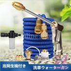 伸縮ホース5m 注水後15m 柔軟性に優れて耐用散水用ホース 泡発生機付 洗車ウォーターガン 花に水をやる事 部屋や庭掃除等に適用