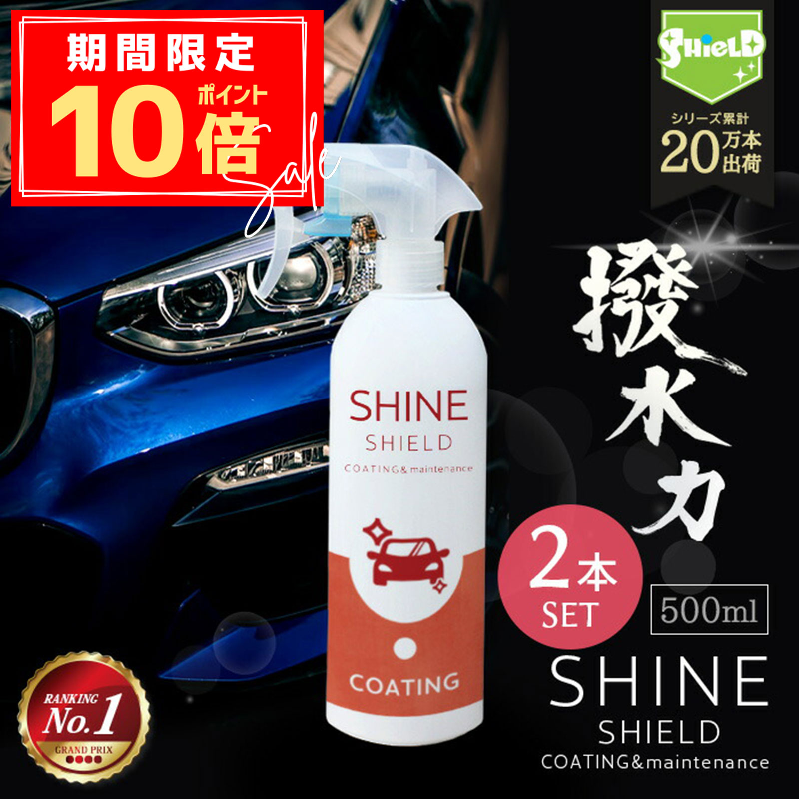 \P10倍+10%OFFクーポン/車 洗車 コーティング 撥水スプレー SHINE SHIELD 500ml 大容量タイプ 2本セット | 濡れたまま スプレー 超撥水 コーティング剤 極艶 艶 つや 光沢 窓 窓ガラス 撥水 ガラスコーティング 撥水コーティング 洗車セット 洗車用品 洗車グッズ 自動車