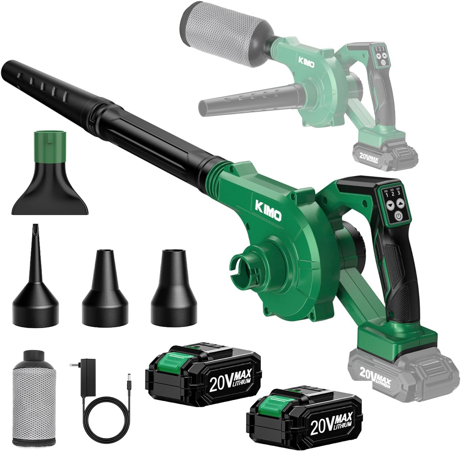 【期間限定★20%OFFクーポン配布中】KIMO ブロワー 強力 洗車 ブロアー 充電式 エアダスター エアーブロー 延長チューブ付き 2.0Ahバッテリ一2個搭載 コードレスブロワー 風量調整可能 吹き飛ばしと集塵1台2役 掃除機 集塵機 小型 ノズル4個 ダストバッグ1個 QM-6304