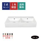 2ボウル洗面 ダブルボウル 2連洗面ボウル 排水栓 セット おしゃれ シンプル 陶器 置き型 白 オーバーフロー無し サイズ 幅1200 奥行き385 高さ145 INK-0415001H
