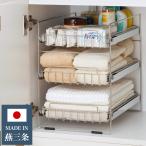日本製 燕三条 ステンレス洗面台下ラック 2段 スライド棚 洗面台下収納 洗面所収納 洗面台ラック シンク下ラック シンク下収納 省スペース 代引不可