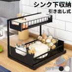 シンク下 収納 スライド 引き出し キッチンラック 2段 ラック 棚 シンク上 食器 キッチン収納 調味料 スチール スライド棚 収納ラック 大容量 台所 洗面台下