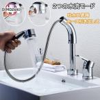 洗面台蛇口 洗面水栓 2つの水流モード °回転 吐水口昇降 ツーホール式 洗髪用 シングルレバー混合栓 穴台付き ホース引き出し式 取り付けホース付き