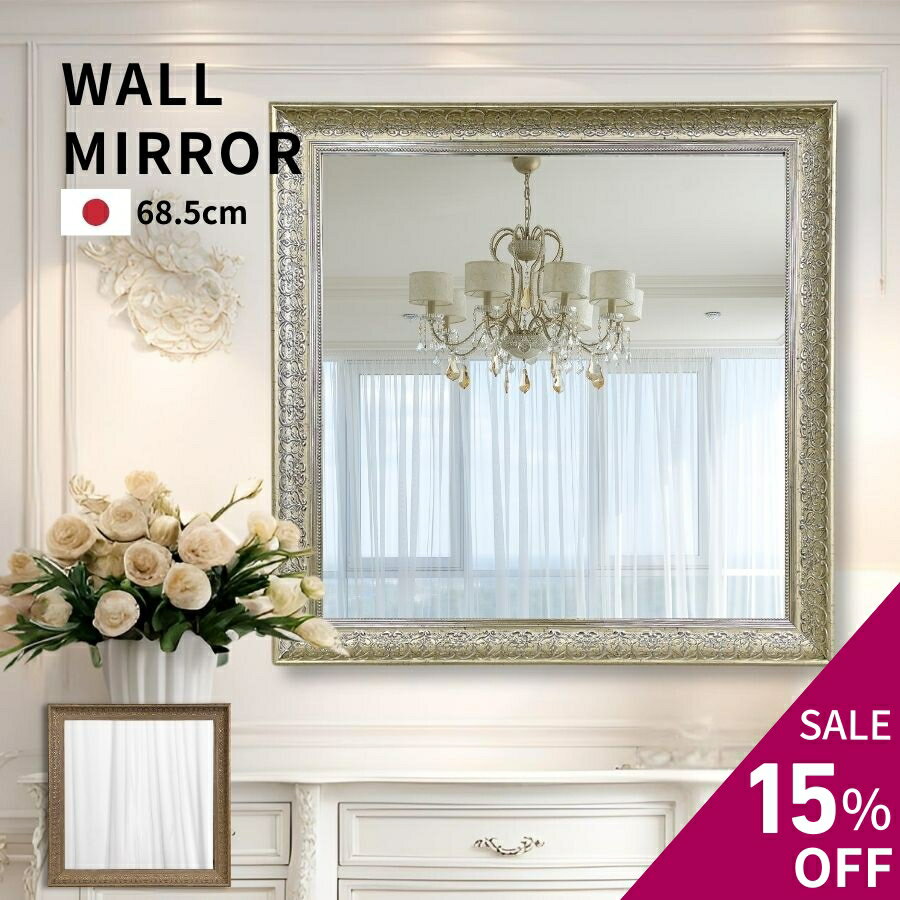 【15%OFF 楽天スーパーセール】 鏡 壁掛け ウォールミラー アンティーク 大型 ミラー 洗面台 おしゃれ 68.5cm アンティーク ゴールド/シャンパンゴールド 全2色 正方形 玄関 トイレ 洗面所 洗面鏡 メイク鏡 壁掛け鏡 壁掛けミラー 姿見 大型鏡 モダン リュクス 日本製