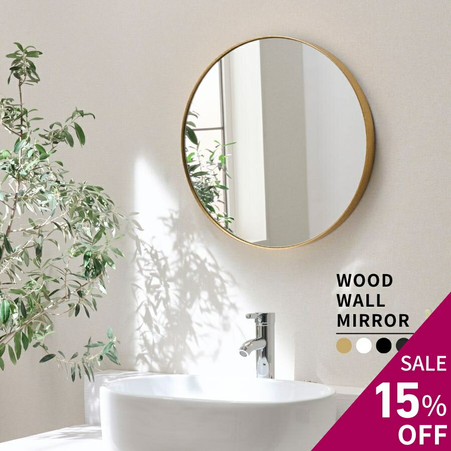 【15%OFF 楽天スーパーセール】 洗面台 鏡 洗面鏡 ラウンドミラー 壁掛け 石膏ボード 壁掛け鏡 ウォールミラー M-L 40cm 50cm 木製 木 丸 丸形 ゴールド/ホワイト/ブラック ミラー 玄関 トイレ 洗面所 メイク鏡 化粧鏡 おしゃれ 白/黒/金 スリムライン 新生活