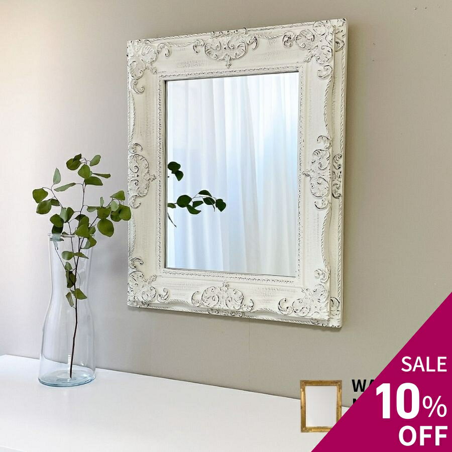 【10%OFF 楽天スーパーセール】 鏡 壁掛け 玄関 洗面鏡 ウォールミラー 洗面台 壁掛けミラー 壁掛け鏡 トイレ 洗面 ミラー おしゃれ クラシカルミラー アーサー M 幅45cm 高さ55cm アンティーク ホワイト/ゴールド 全2色 洗面所 メイク鏡 ドレッサー