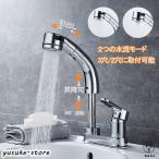 洗面台蛇口 混合水栓 ホース引き出し式 洗面水栓 シングルレバー 洗面用水栓 洗面所 化粧台も 360°回転 泡沫 ¥u0026シャワーが切り替え 台付き2穴 台所用品