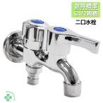 二股蛇口 洗濯機用水栓金具 おしゃれ 壁付け ワンホール 交換自分で 屋外 ガーデン 庭園 水栓柱用 単水栓 2ハンドル 二重出口 水道 二股水栓 洗面台 屋外