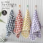 ループ付きフェイスタオル フェイスタオル タオル 長方形 35cm 75cm チェック 柔らかい バス用品 洗顔 洗面所 浴室 キッチン 手拭き 顔拭
