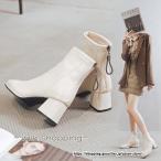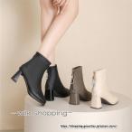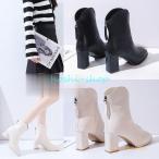 ショートブーツ ブーティー ブーツ レディース シューズ 靴 太ヒール チャンキーヒール 合皮ブーツ PUブーツ くつ 後ろファスナー 春秋冬 美脚 大人 黒靴
