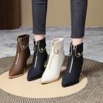 太ヒールブーツ レディース ショートブーツ ポインテッドトゥ チャンキーヒール ハイヒールブーツ 通学通勤 脚長 ブーツ シンプル 大人 黒ブーツ 25cm 30代