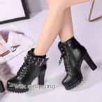 ブーツ 厚底シューズ ラウンドトゥ チャンキーヒール レースアップ サイドファスナー ショートブーツ ハイヒール 厚底ブーツ レディース 黒ブーツ 25cm