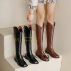 ロングブーツ レディース ブーツ 秋冬 シューズ 靴 太ヒール チャンキーヒール 合皮ブーツ PUブーツ ロング靴 くつ 後ろファスナー COS 大人