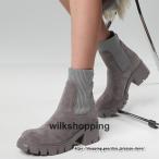 大きいサイズショートブーツ 27cm レディース 上品 ブーツ 秋冬 春 厚底ブーツ ラウンドトゥ チャンキーヒール 太ヒール 大人 黒ブーツ ソックス切り替え