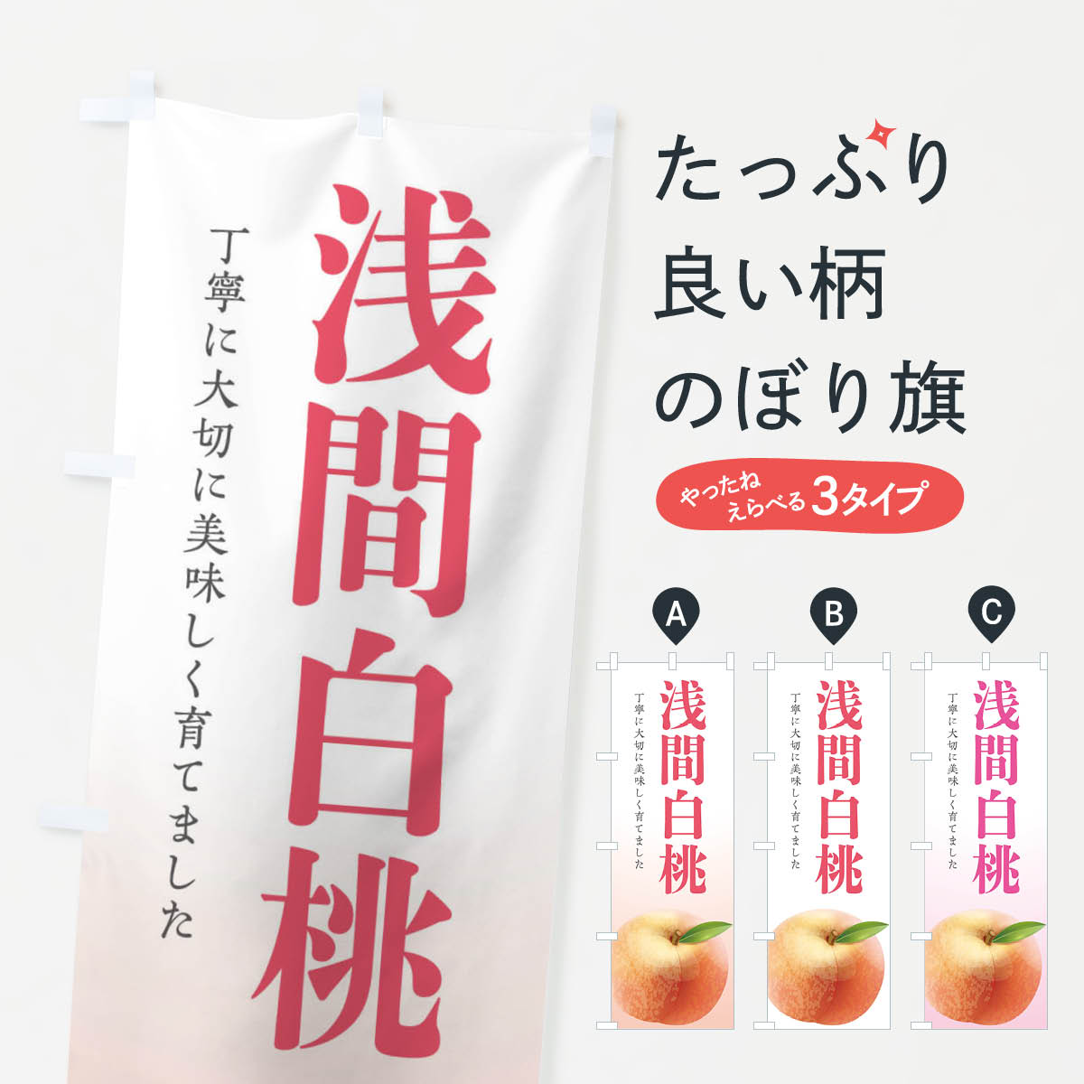 浅間白桃 のぼり旗 選べるカラー3色(受注生産品・キャンセル不可)