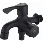 洗濯機用双口水栓 万能ホーム 二股蛇口 2口水栓 屋外 黒洗濯機の蛇口黒トイレ用真ちゅう