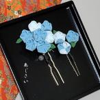 髪飾り つまみ細工 あじさい 2点セット ビーズ Uピン 和装 浴衣 結婚式 成人式 七五三 卒業式 入学式 花 ヘアアクセサリー 水色