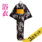 浴衣レンタル 浴衣レディースセット 浴衣 レディース 3点セット NT-y026 黒色 すずらん 浴衣セット 往復送料無料