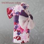 【10秒で簡単装着浴衣帯】浴衣 レディース 浴衣 ワンタッチ作り帯 下駄 選べる 浴衣 2点セット、3点セット フリーサイズ x33 | 簡単 ワンタッチ 作り帯 大人 レディース 婦人 婦人浴衣 ゆかた レトロ モダン 平織 百合 猫 コスモス 秋桜 黒 紫 青 赤