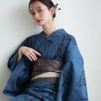 浴衣 レディース セット utatane × 注染工房 特選 注染浴衣3点セット 赤坂紬 青藍に紺の花灯(はなあかり)フリーサイズ 浴衣・帯・下駄付き 青