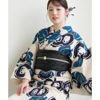 浴衣 レディース セット utatane×注染工房 浴衣3点セット きなりにグレーの網と海老たこ にじみ 手染め フリーサイズ 浴衣セット(ゆかた・帯・下駄)