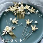 髪飾り 4点セット ヘアピン コーム かんざし パール 白 花 結婚式 成人式 卒業式 和装 洋風 着物 留袖 振袖 訪問着 色打掛 袴 浴衣 ゴールド