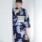 浴衣 有松絞り浴衣3点セット utatane 綿麻 白と紺の花シルエット レディース