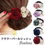 シュシュ ヘアゴム フラワーシュシュ バラ パール ヘアアクセサリー 浴衣 着物 パールアクセ ローズ 送料無料 得トクセール オープン記念