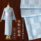 綿絽 レディース浴衣 お仕立て済み 市松柄 <牡丹柄 青> フリーサイズ プレタ浴衣 プレタゆかた 大人用 女性用