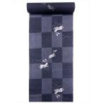 浴衣 反物 No.37 濃紺地 ウサギ・市松柄 片面染め/耳あり
