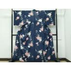 反物 優品 浴衣 朝顔 濃紺 綿 中古