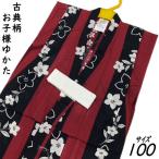 ゆかた こども サイズ100 赤黒 古典柄 桔梗に小桜 浴衣 女の子 キッズサイズ 3才から4才用 100cm 子供 綿 レトロ 子供浴衣 こども浴衣 子供ゆかた