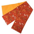 半幅帯 細帯リバーシブル 小紋 浴衣に 日本製 踊り お稽古 桜 波 ポリエステル 柔らか 光沢 2色 菜の花色 金茶色 送料無料