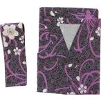 浴衣 ゆかた カジュアル レディース 大人 単品 新品 未使用 黒 撫子 なでしこ 桜 花 立涌 紋紗織 夏用 夏物 着物 きもの 夏祭り お祭り 浴衣 z769