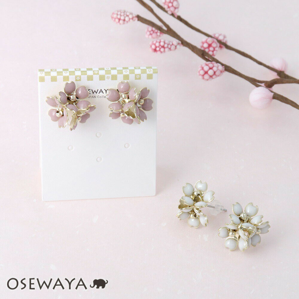 【10/14夜限定50%OFFクーポン】ピアス 桜 チェリーブロッサム ストーン メタル エッジ ウェーブ ステンレスポスト ドロップピアス | OSEWAYA アクセサリー レディース 女性 大人 プレゼント ギフト 結婚式 誕生日
