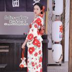 【クリアランス50%offクーポン】10/12~21 浴衣 セット レディース レトロ 浴衣セット 大人 3点セット ホワイト 白 レッド 赤 椿 ツバキ 花 フラワー 綿 夏祭り 花火大会 女性用 S・フリー 送料無料