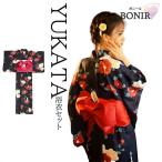 【クリアランス50%offクーポン】10/12~21 浴衣 レディース bonheur saisons ボヌールセゾン 黒 ブラック 白 ホワイト 赤 レッド 椿 縞 ストライプ モダン ラメ 綿 変わり織り 洗える 夏祭り 花火大会 女性用 仕立て上がり