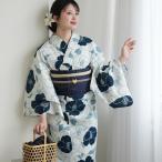 浴衣セット レディース 大人可愛い 浴衣3点セット(浴衣+半幅帯+下駄)「檸檬・八重椿・クレマチス」S/F/TL/LLサイズ 綿 きもの町オリジナル 個性的 レトロモダン 花火大会 夏祭り 女性用浴衣 ゆかた yukata【メール便不可】