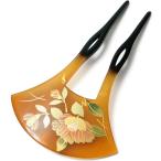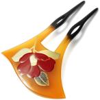 かんざし モダン椿 蒔絵風 べっ甲調 黄土 バチ型 フォーマル 髪飾り ヘアアクセサリー 和装 振袖 浴衣
